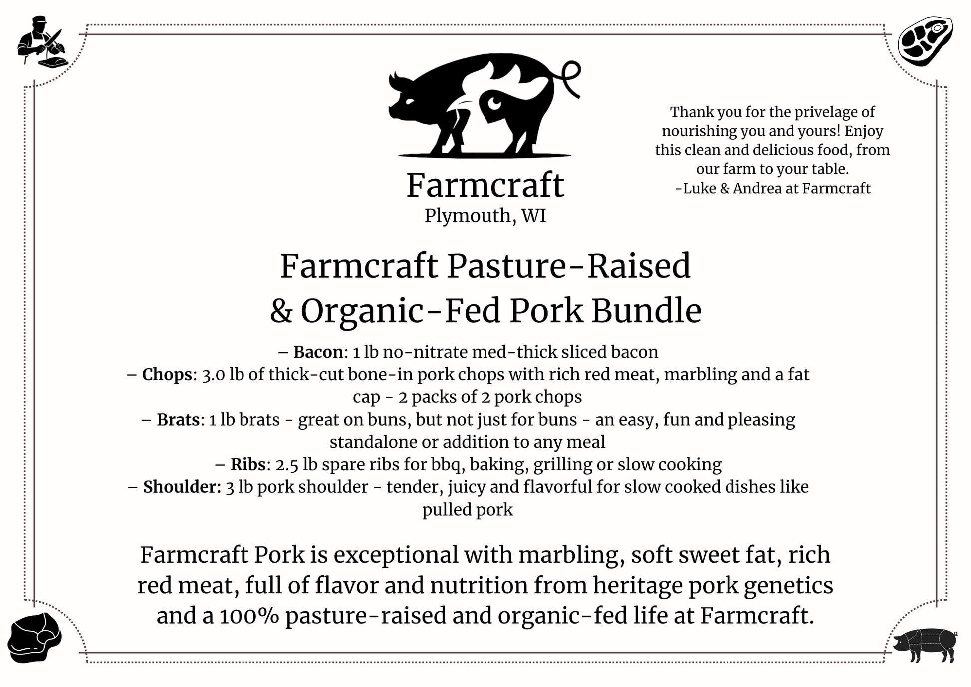Let us know if you order this for a gift. With your bundle, we will include a paper description of Farmcraft pork in general and the gift bundle in particular. That way, you can give the gift while the pork stays cold in your freezer!